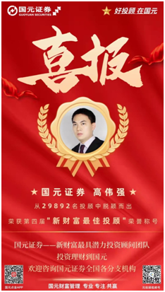近日,第四届新财富最佳投资顾问评选结果最终出炉,本次评选中,公司喜获 “新财富最佳投资顾问卓越组织奖”、“新财富最具潜力投资顾问团队”第三名。同时,6人入围“最佳股票投资收益奖”(top300),5人入围“最佳资产配置奖”(TOP200),来自芜湖黄山西路营业部的高伟强老师更是荣获“第四届新财富最佳投资顾问”。