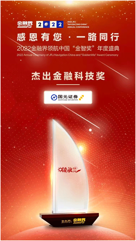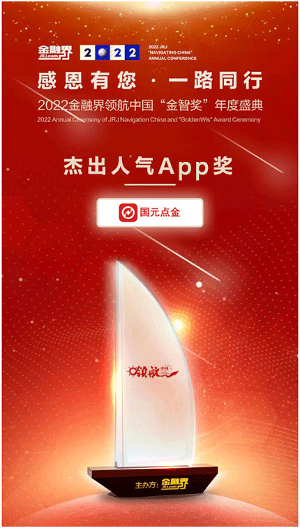 12月30日,在金融界发起主办的第十一届金融界领航中国年会暨2022领航中国“金智奖”年度盛典上,凭借在财富管理、金融科技等方面的优异表现,国元证券及旗下的国元点金App荣膺2022领航中国“金智奖”年度盛典两项大奖——“杰出金融科技奖”以及“杰出人气App奖”。