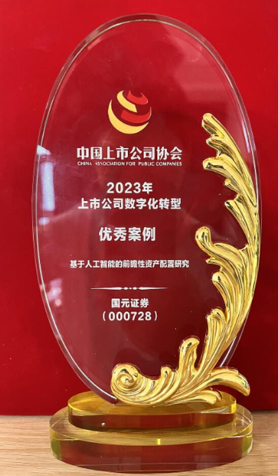 会上,中国上市公司协会发布了《2023年上市公司数字化转型典型案例》,公司申报的课题《基于人工智能的前瞻性资产配置研究》在众多案例中脱颖而出,获得了“2023年上市公司数字化转型优秀案例”奖。