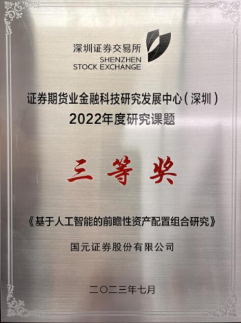 会上,金融科技中心发布了2022年度优秀课题获奖名单,公司金融产品部与金融科技创新实验室(以下简称“实验室”)联合申报的《基于人工智能的前瞻性资产配置组合研究》课题在众多课题中脱颖而出,获得“深交所金融科技中心2022年度优秀课题三等奖”。 2022年金融科技中心共收到200余份课题研究计划,通过评审共立项课题122个,最终评出30个获奖课题,其中中小券商仅占2席,这也是安徽券商首次获此奖项。