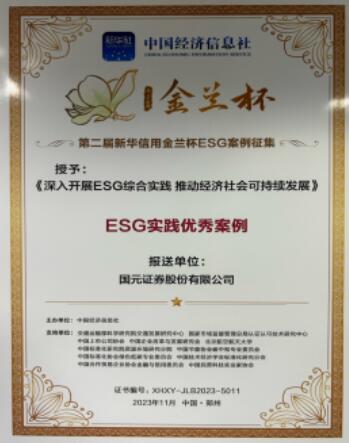 近日,从新华通讯社、郑州市人民政府等主办的第五届中国城市信用建设高峰论坛—企业ESG与高质量发展主题论坛上传来喜讯,囯元证券凭借在ESG实践中的优秀表现,荣获第二届“新华信用金兰杯”ESG实践优秀案例。