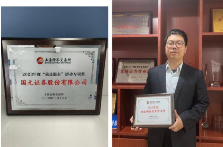 国元证券荣获上交所“2023年我是股东”活动专项奖;杭州密渡桥路证券营业部、合肥宿州路证券营业部、马鞍山分公司荣获“2023年快速调查优秀营业部”称号!这些奖项的获得,一方面体现了上交所对公司投资者保护工作的充分肯定;另一方面也是公司所有投教工作人员持续、不懈努力的成果。希望大家再接再厉,争取在2024年度的投资者教育和保护工作中取得更好的成绩。